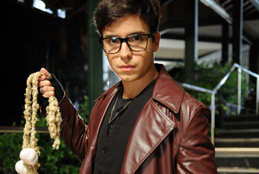 Enquanto isso, cheio de truques para cabar com os vampiros, Téo é o mago Merlin